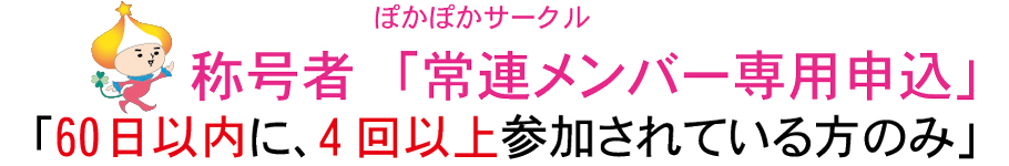 称号者【レギューラーメンバー(60日以内に4回以上参加されている方)】参加希望/参加申込